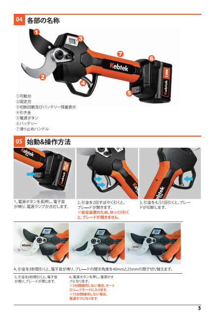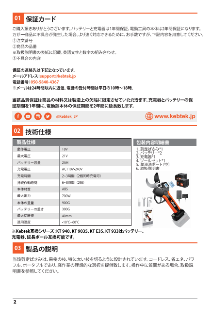 Kebtek電動鋏KT940の取扱説明書