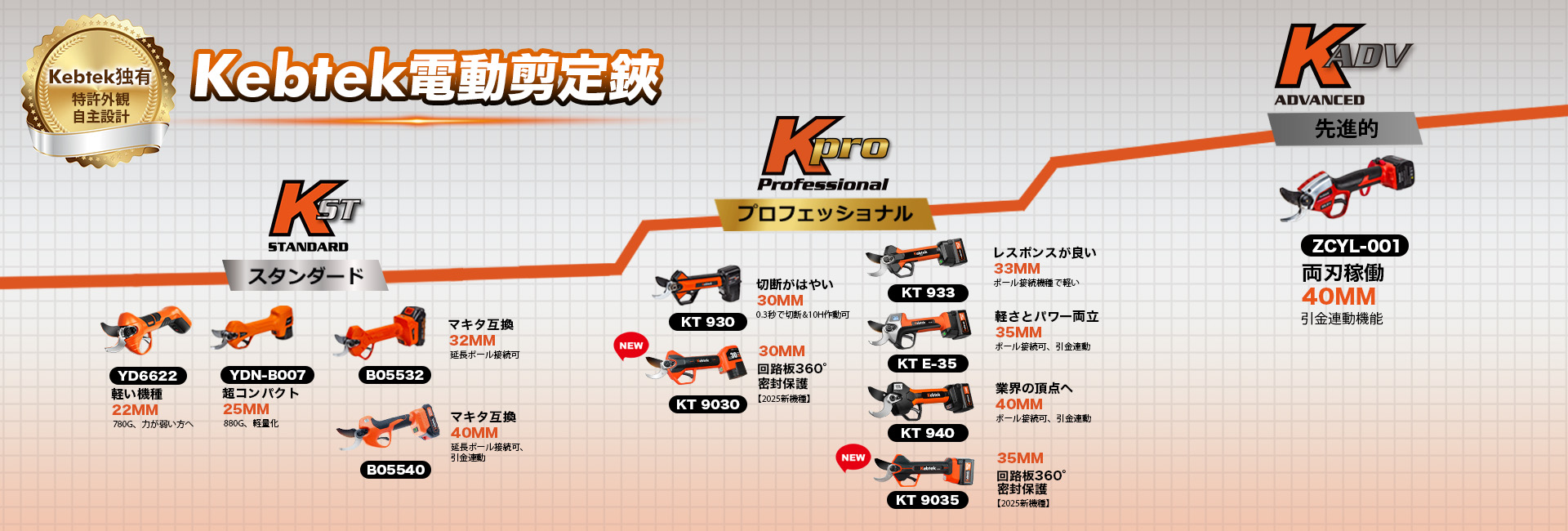 2025年新型【軽さとパワーを両立・プログレッシブ機能】切断径30mm Kebtek 電動剪定バサミ 品番KT 9030
